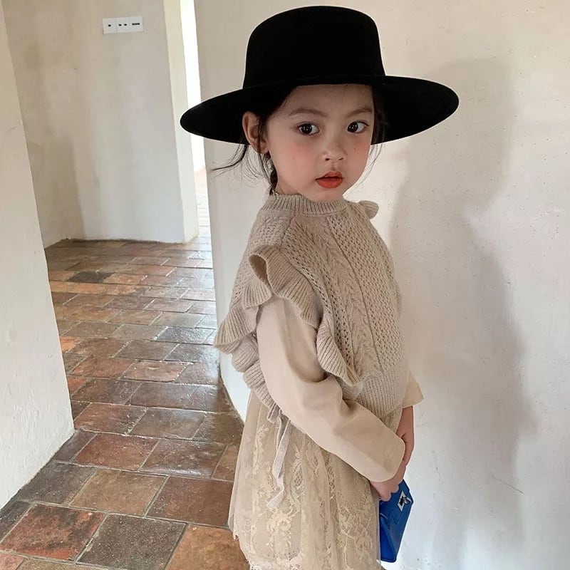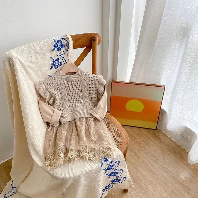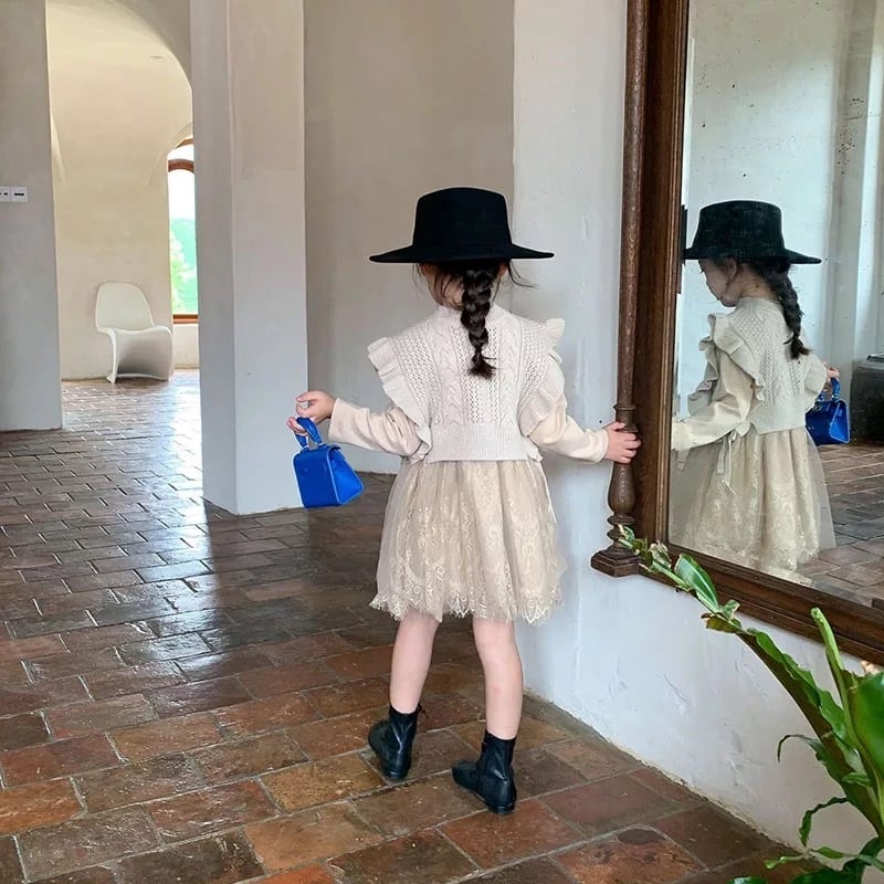 ニットベスト付きレースワンピース